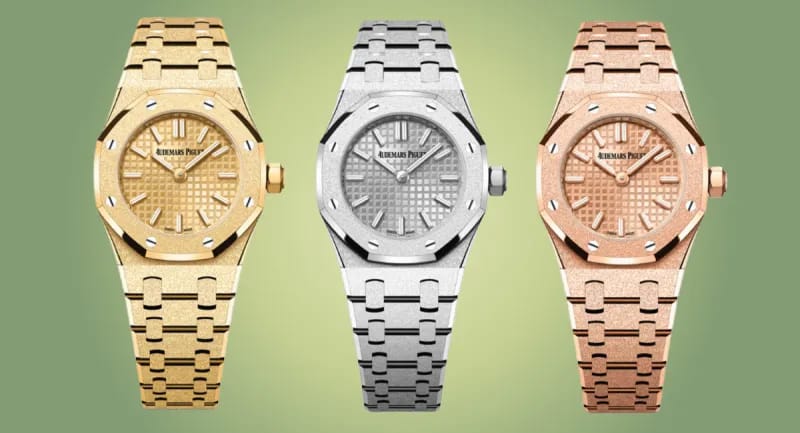 Other notable releases include the 37mm Royal Oak Double Balance Wheel, admired for its open-worked design and subtle color play, and the 34mm Royal Oak Frosted Gold Selfwinding, which features a dazzling 3D dial handcrafted to create a textured, sparkling effect.
