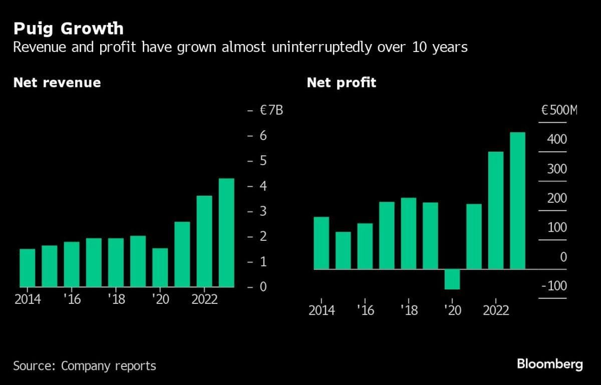 Puig has recently broadened its portfolio by entering the skincare and makeup sectors, including acquiring the British brand Charlotte Tilbury. This expansion helped more than double its revenue over the past decade. The company, which also debuted a new corporate logo to signify its new chapter, operates across 32 countries and boasts 17 major brands, with key revenues stemming predominantly from its fully or majority-owned brands.