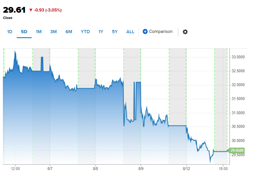 Values are as of market close on Monday, August 12, 2024, 4:00 p.m. ET. Percentages are based on stock performance over the prior 5 days