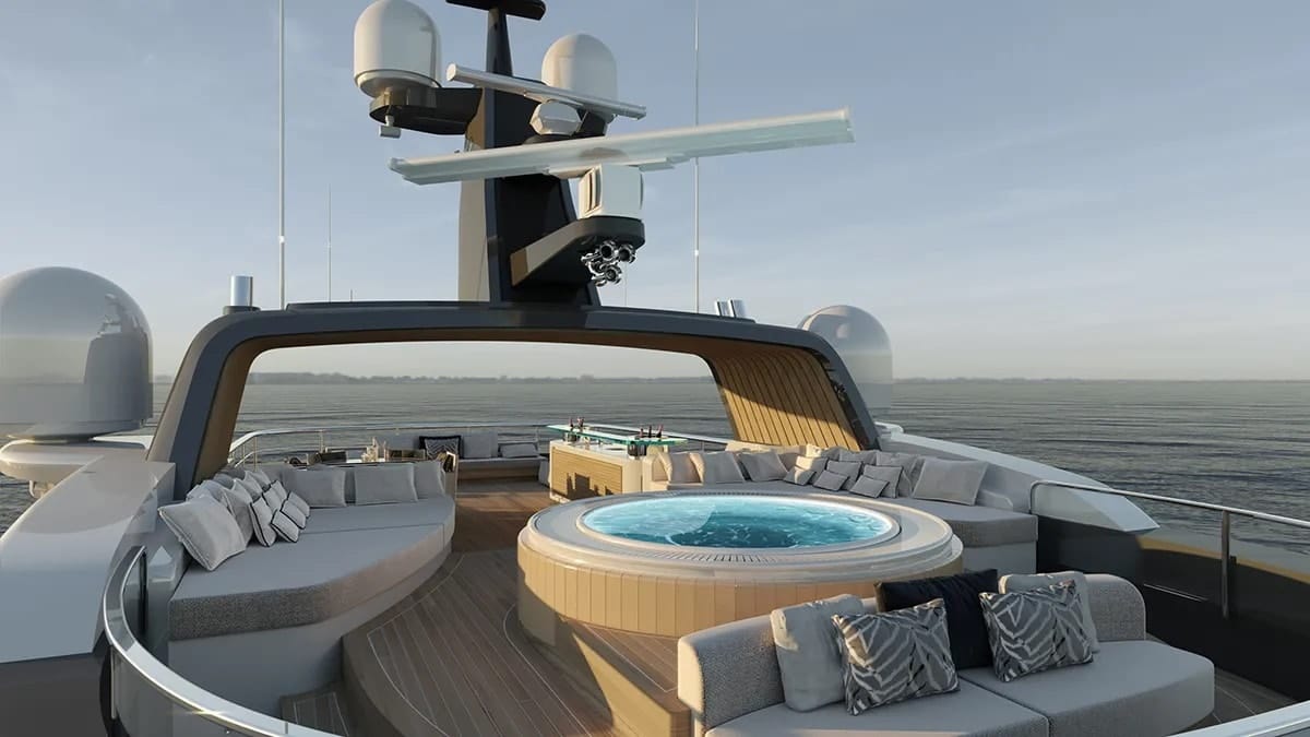 Designed to maximize onboard enjoyment, Lady A features a party deck with al-fresco areas, a large bar, and an expansive beach club equipped with a Hammam, bath, and shower. The sundeck, complete with a jacuzzi and sun pads, offers the perfect setting for relaxation and entertainment.