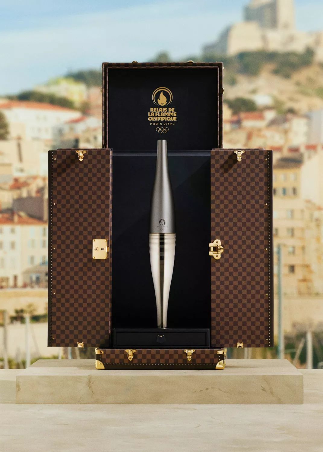 The design of the torch trunk is similar to that of the medal displays and was seen protecting the Olympic Torch during its journey from Olympia and Athens to various French regions, finally arriving in Paris for the opening ceremony on July 26. This trunk also visited the Fondation Louis Vuitton, a museum and cultural center in Paris.