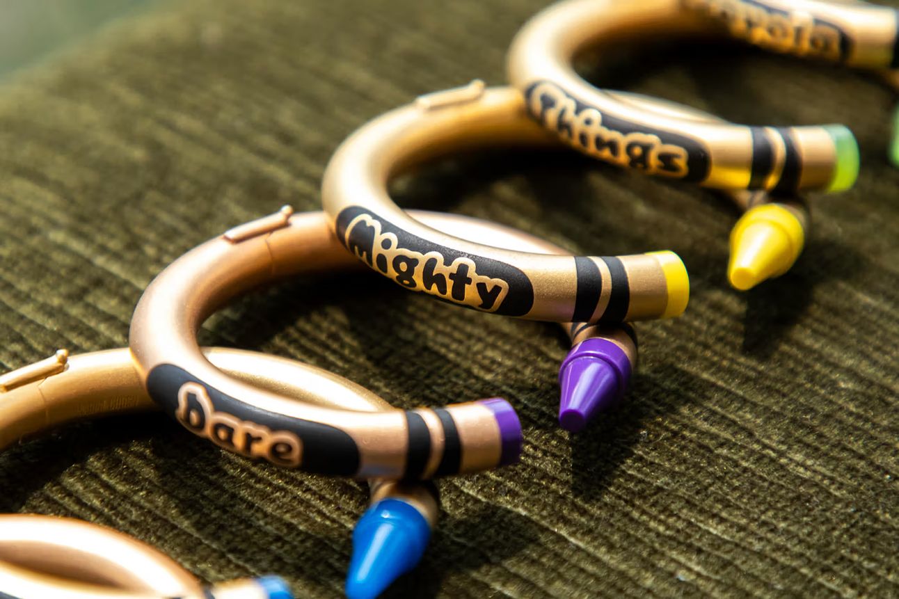 Titled "Color-FULL," the collection draws on the whimsical creativity of childhood, combining Ghosn's signature trompe l'oeil humor and Italian craftsmanship with Crayola's imaginative spirit. Many remember using Crayola crayons to express artistic visions as children, and this collaboration aims to rekindle that carefree creativity. Ghosn’s gold bracelets now feature a Crayola-inspired twist, complete with customizable options to make each piece unique.